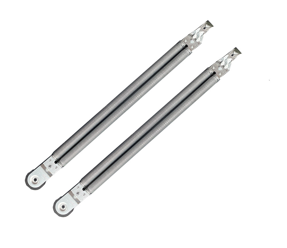 Ce ressorts de traction pour portes sectionnelles est destiné aux portes de garage avec les ressorts verticaux dans chaque montant. La force du ressort doit être adaptée au poids de la porte et à sa hauteur. Chaque unité est composée de quatre ressorts, d’une poulie en partie haute, et d’un crochet en partie basse.