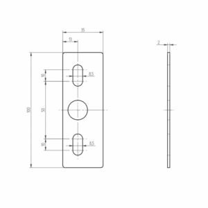 - 2 gâches, à fixer sur le rail de guidage de chaque coté